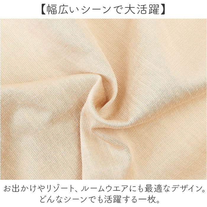・お出かけやリゾート、ルームウエアにも最適なデザイン。どんなシーンでも活躍する一枚。