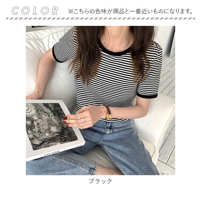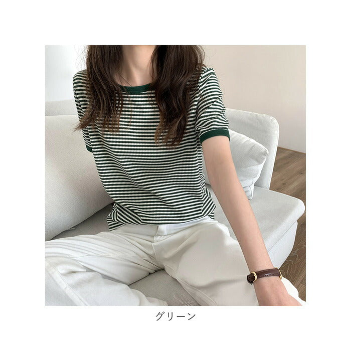 ・リブ生地×誰でも着こなしやすいボーダーデザイン♪シンプルなボトムスと合わせるだけで、おしゃれにキマるアイテム。