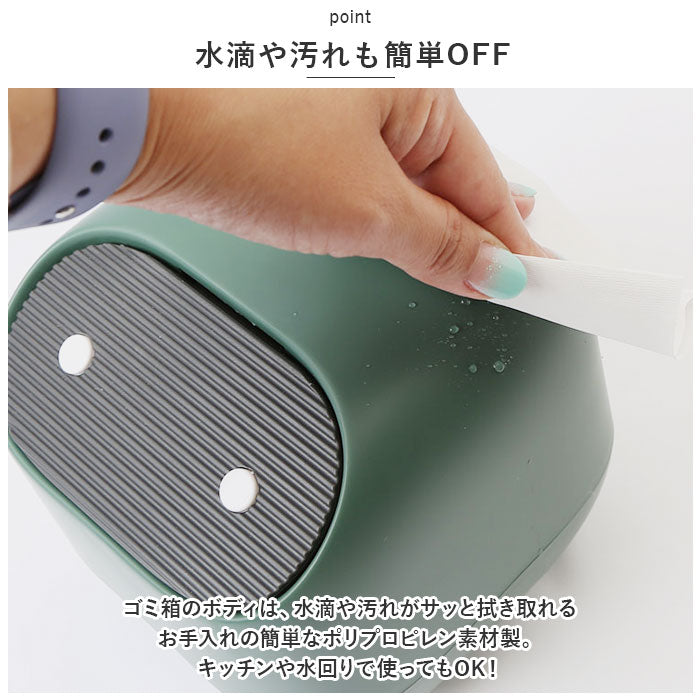 ・ゴミ箱のボディは、水滴や汚れがサッと拭き取れるお手入れの簡単なポリプロピレン素材製。キッチンや水回りで使ってもOK!