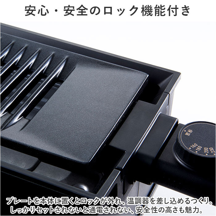 ・プレートを本体に置くとロックが外れ、温調器を差し込めるつくり。しっかりセットされないと通電されない、安全性の高さも魅力。