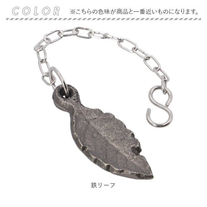 ・S字フックとチェーンが付いているから、鍋などの持ち手に掛けながら鉄リーフを入れることが可能。チェーンを使えば取り出しもスムーズ。(※チェーンを取り付けることができない場合は、直接鉄リーフを入れてください。)