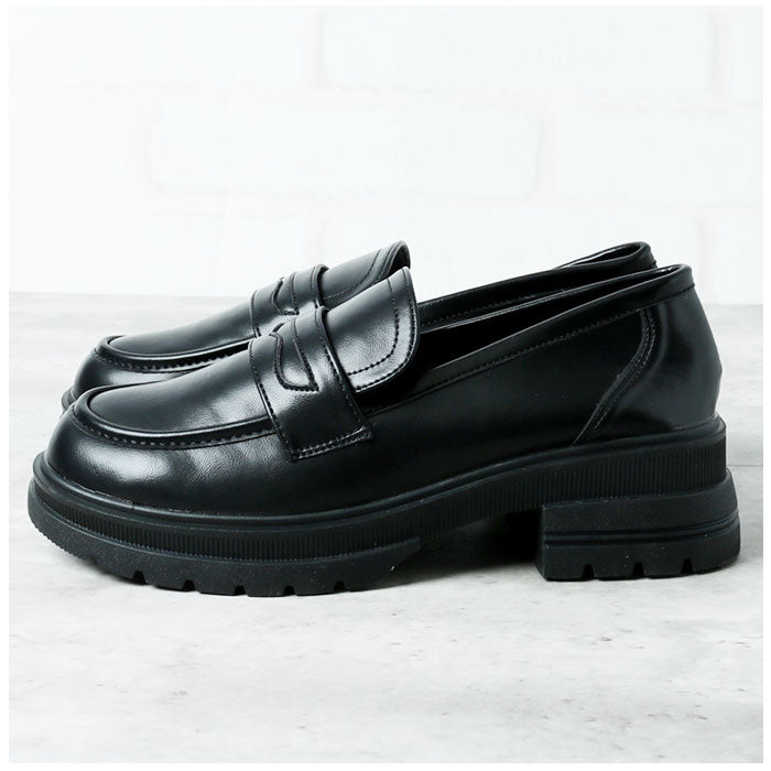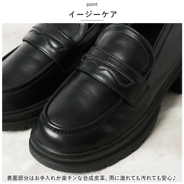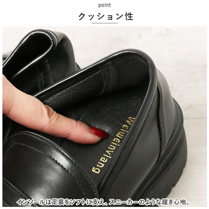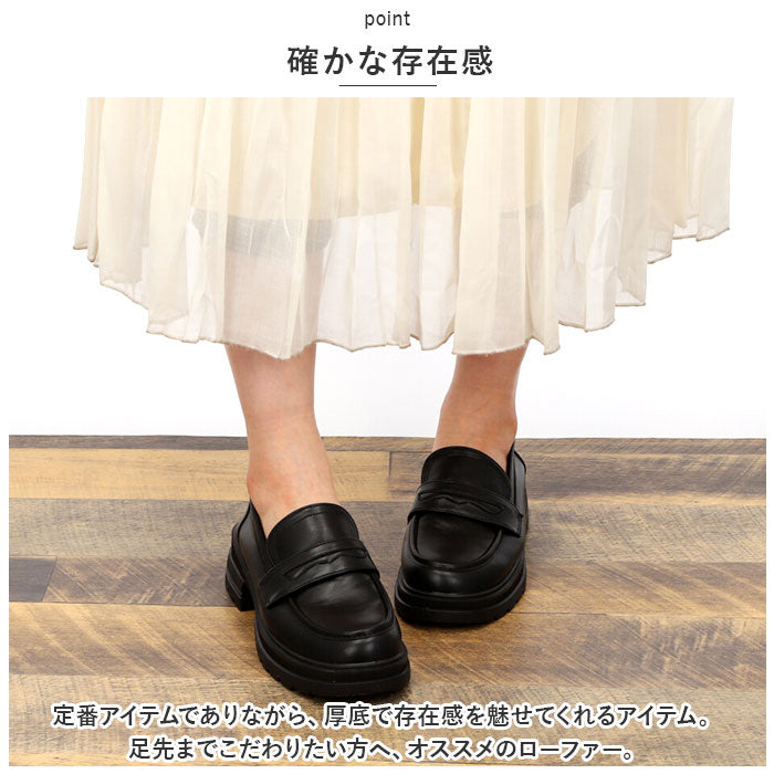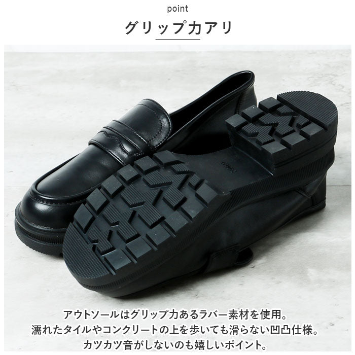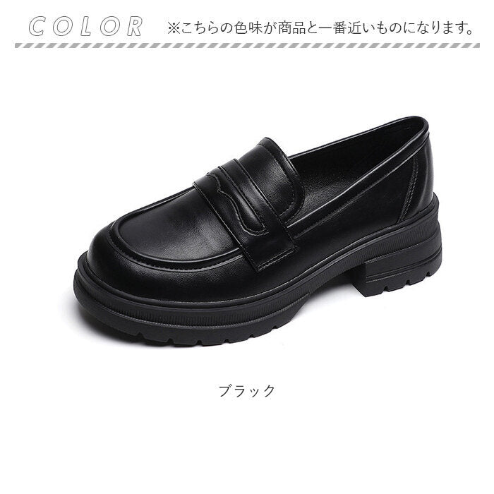 厚底 ローファー 通販 靴 くつ フラットシューズ 太ヒール 柔らかい 通気性 吸汗性 疲れにくい 歩きやすい シンプル 5cmヒール 通勤 通学 入学式 卒業式 フォーマル お呼ばれ シューズ