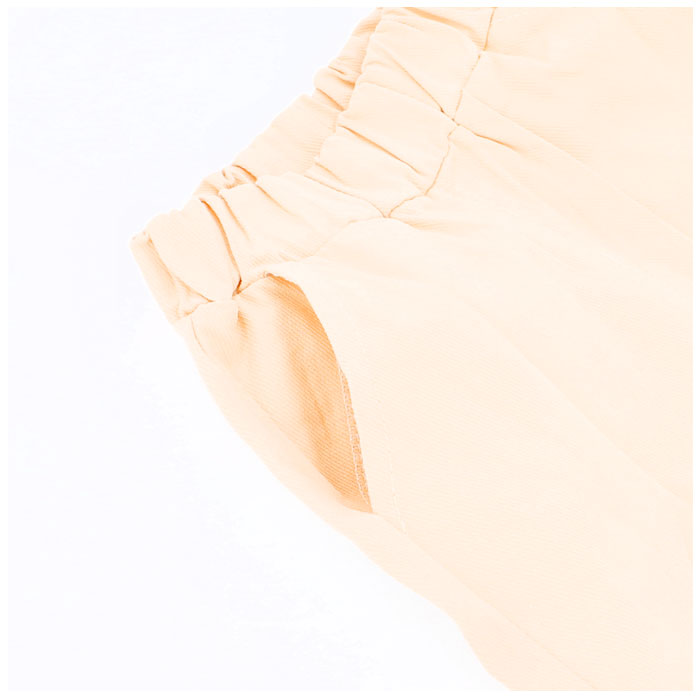 ・ワンピースはゆるっとしたAライン、パンツは平ゴムウエスト仕様だから締め付け感がなく動きやすい作りに。