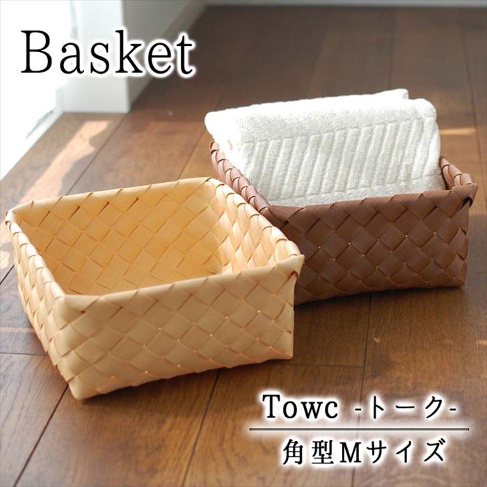 収納かご おしゃれ 通販 収納 かご バスケット 収納バスケット 収納ケース 小物 角型 M Towc トーク PE 経木 洗える 水拭きできる フェイク経木 シンプル ナチュラル かわいい 籠 長方形 収納用品 生活雑貨