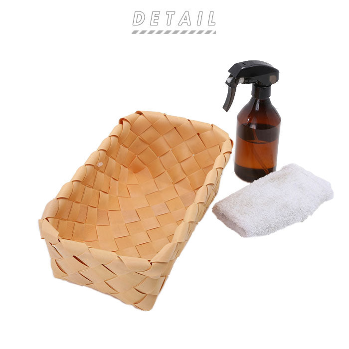 ・経木とは、スギやヒノキなどの木材を薄く削りだした材料のこと。経木の柔らかでナチュラルな質感を天然素材風のPE素材で再現した収納バスケット。