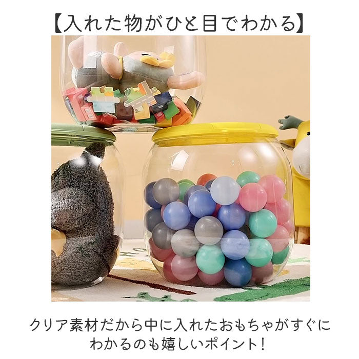 ・ごちゃつきがちなお子さまのおもちゃをかわいく収納できる「収納スツール クリア フタ付き」