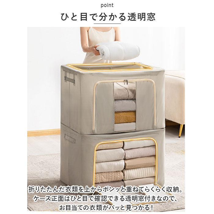 収納ボックス フタ付き 布 通販 収納袋 収納ケース 衣類 布団 扉付き 66L 大容量 取っ手付き ふた付き 窓付き 羽毛布団 布団収納袋 折りたたみ 積み重ね クローゼット 押し入れ収納