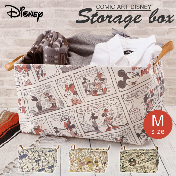・ディズニーキャラクターのコミックアート調デザインが可愛い!ナチュラルなキャンバス素材のストレージボックス。Mサイズ。