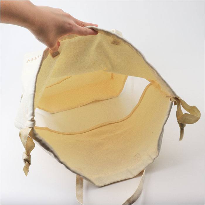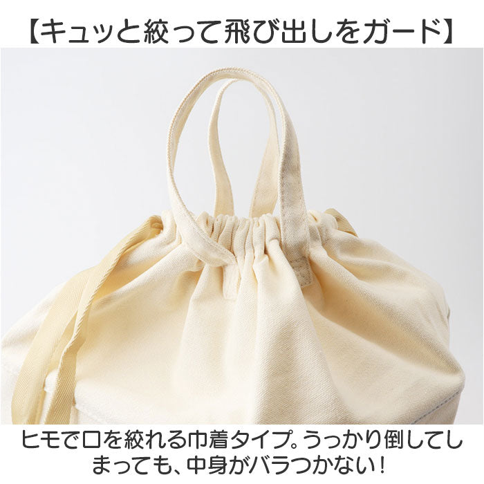 ・ヒモで口を絞れる巾着タイプ。うっかり倒してしまっても、中身がバラつかない!
