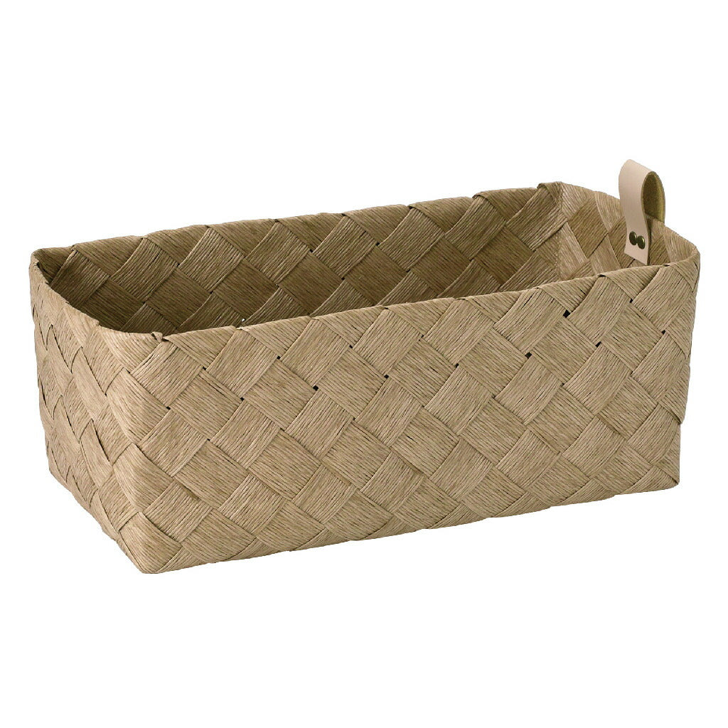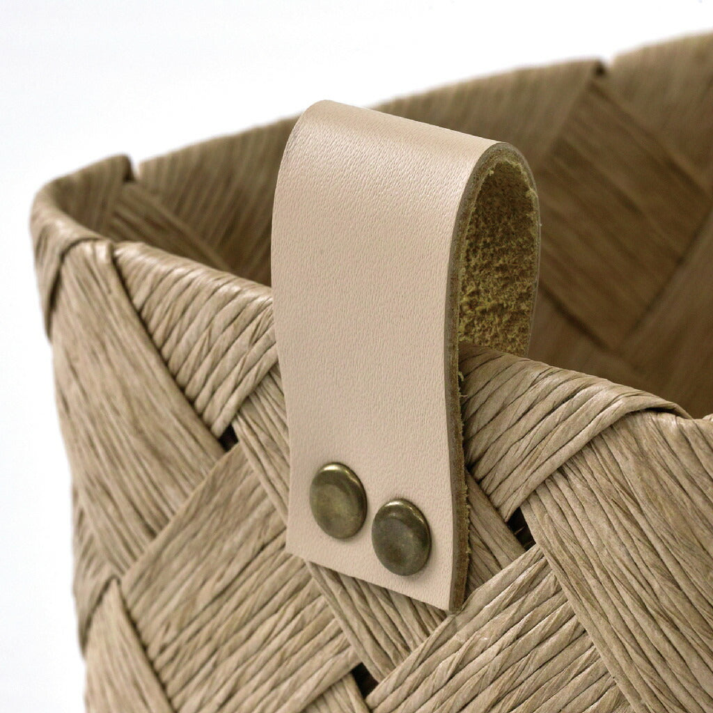 ・リサイクルレザーのループタグ付き。キッチンやリビングの小物の収納に。