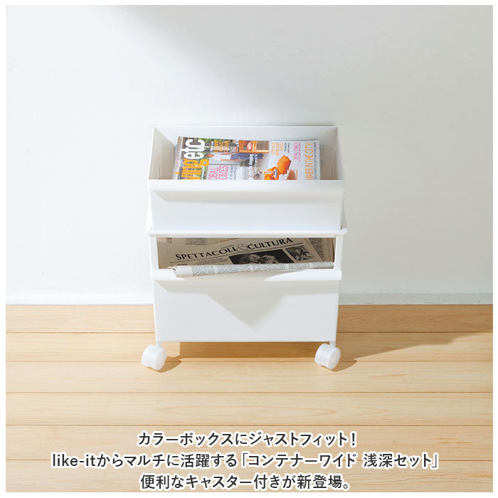 ・カラーボックスにジャストフィット!like-itからマルチに活躍する「コンテナーワイド 浅深セット」便利なキャスター付きが新登場。