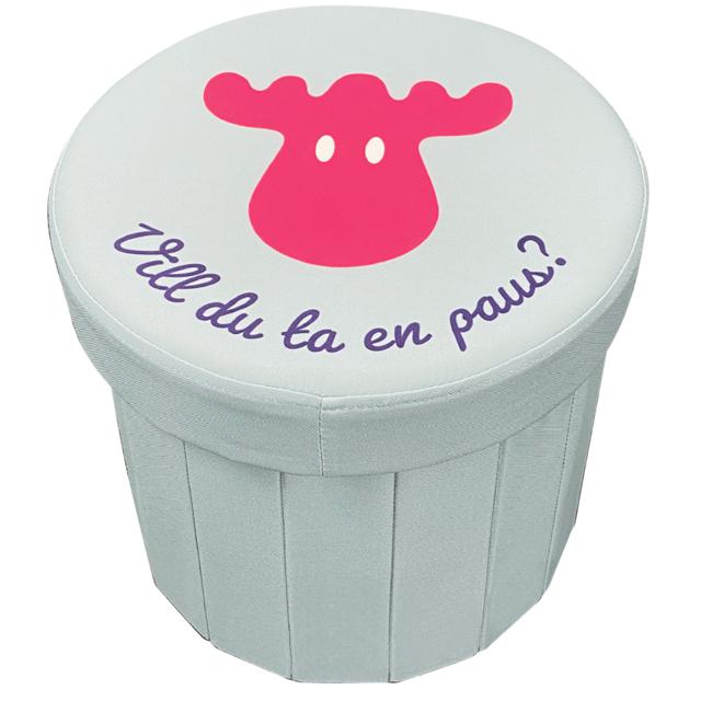 ・丸いフォルムがかわいらしい、ボックス型のスツール。座面を開けると中は収納スペースに!