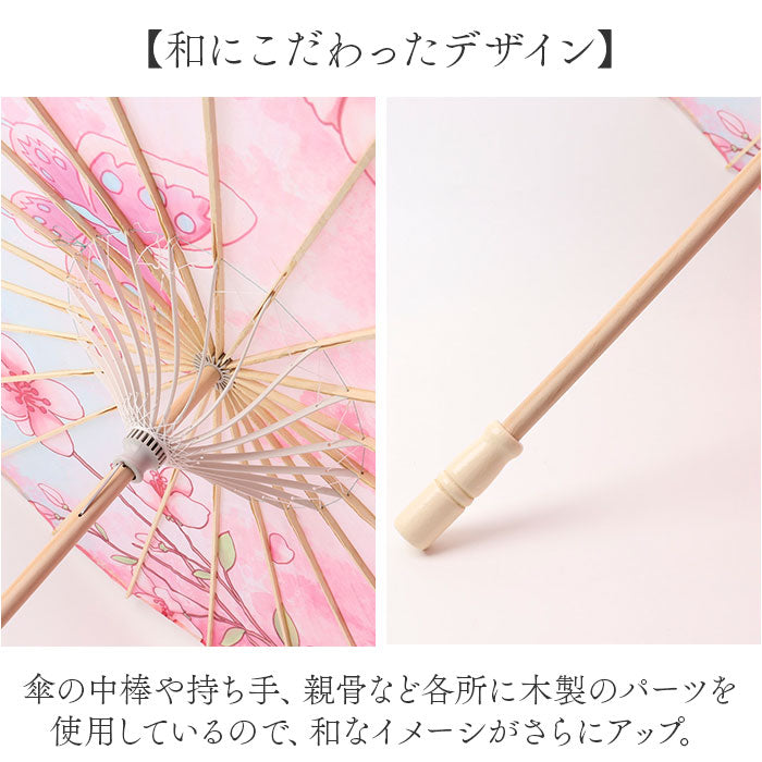 ・傘の中棒や持ち手、親骨など各所に木製のパーツを使用しているので、和なイメーシがさらにアップ。