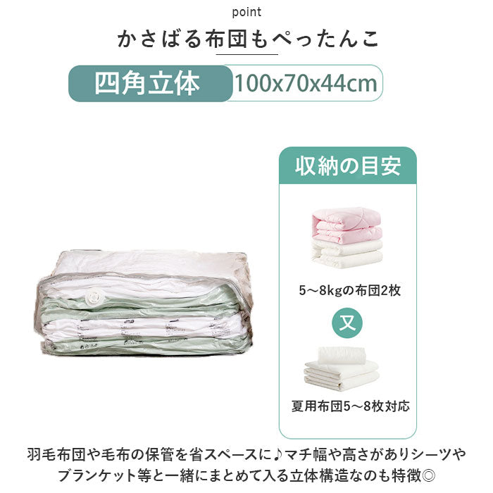 圧縮袋 ふとん 通販 四角立体 100×70×44 100 70 44cm 圧縮袋布団 透明 繰り返し クリア 掃除機不要 収納袋 衣類収納 大きい 衣替え 収納用品 整理用品 便利グッズ