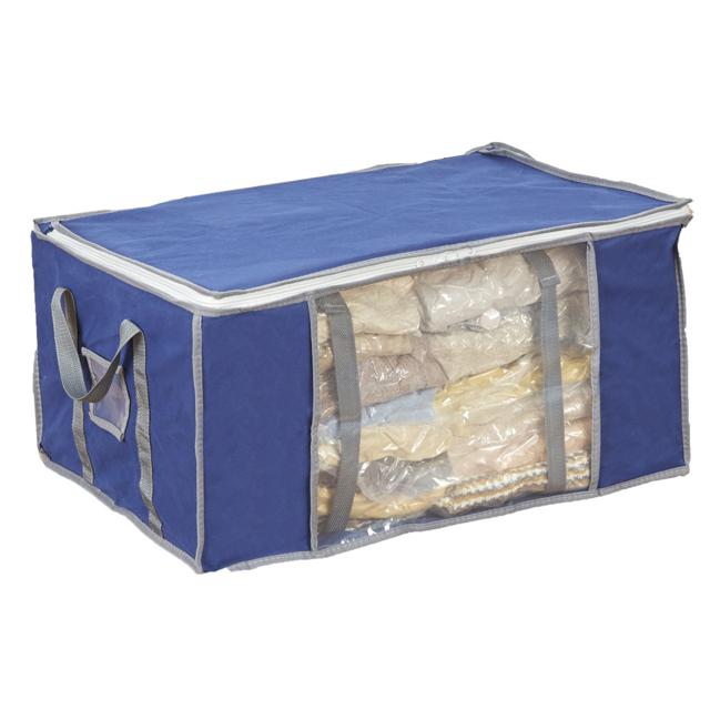 ・掃除機で吸引するタイプの衣類用圧縮袋と、専用収納ケースが一体になったお役立ちグッズ。かさばる衣類をコンパクトに!乱雑になりがちなクローゼットもすっきり!
