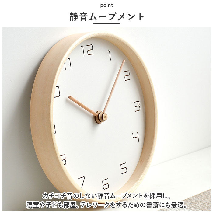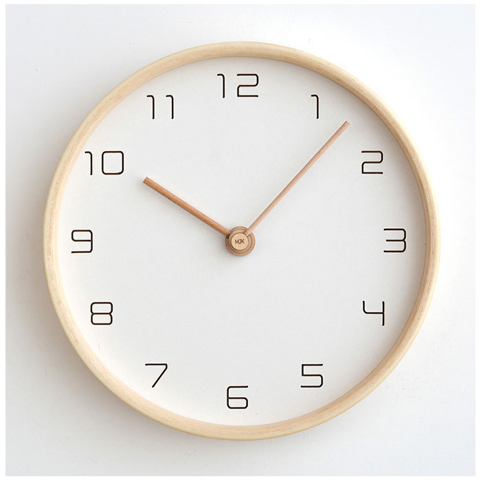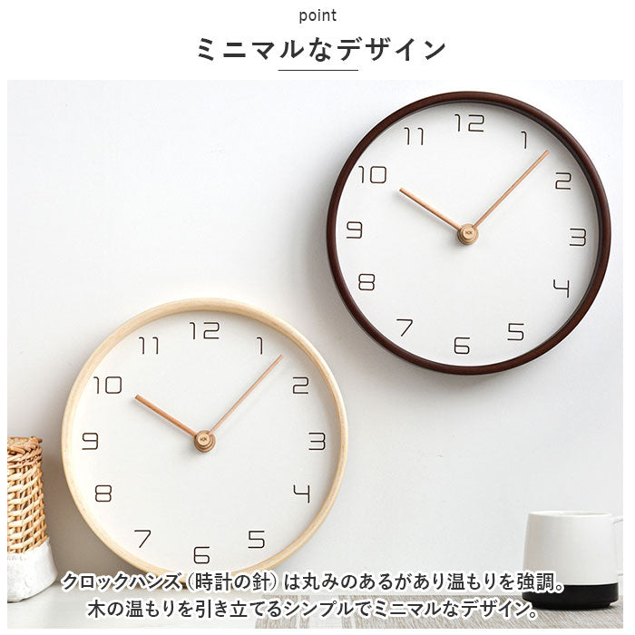 ・クロックハンズ(時計の針)は丸みのあるがあり温もりを強調。木の温もりを引き立てるシンプルでミニマルなデザイン。