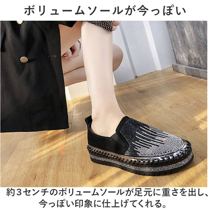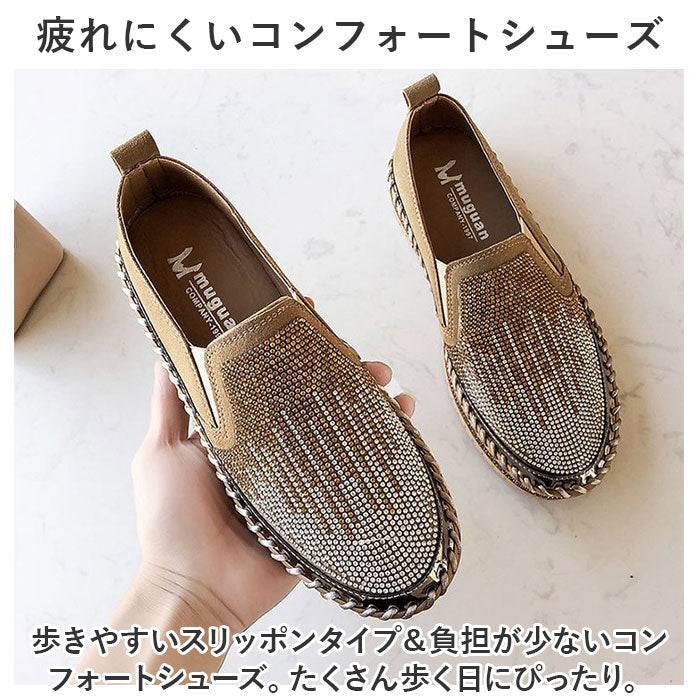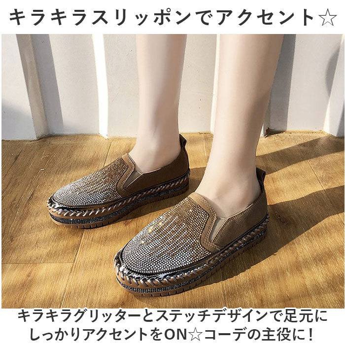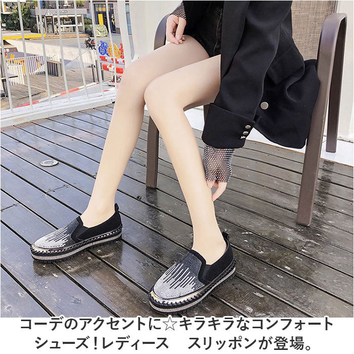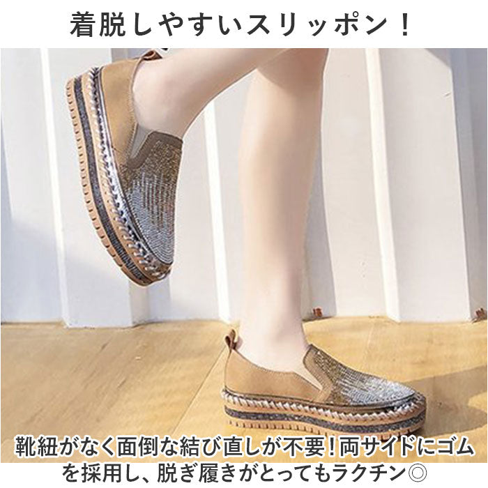 大人 厚底 スリッポン 通販 スニーカー 靴 くつ シューズ フラットシューズ スリップオン おしゃれ レディース ラウンドトゥ コンフォート キラキラ ローカット ペタンコ 履きやすい