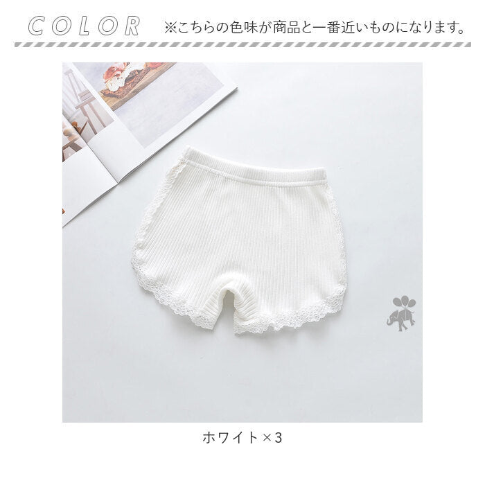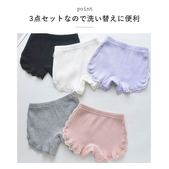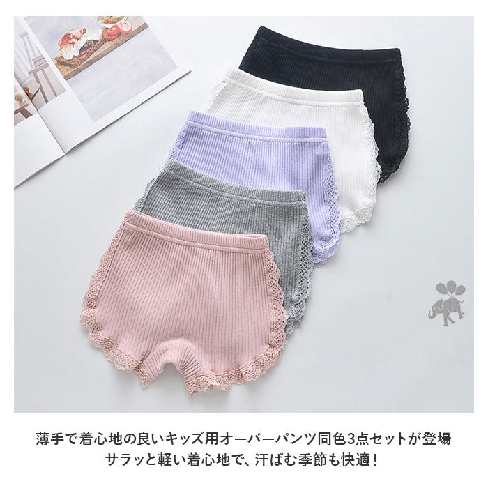 女の子 オーバーパンツ レース サイドレース 通販 3点セット ショーツ スパッツ パンツ コットン 綿 かわいい 下着 子供 キッズ ジュニア インナー インナーウエア 子ども こども ファッション