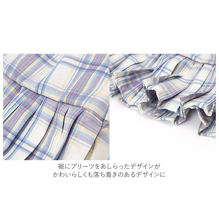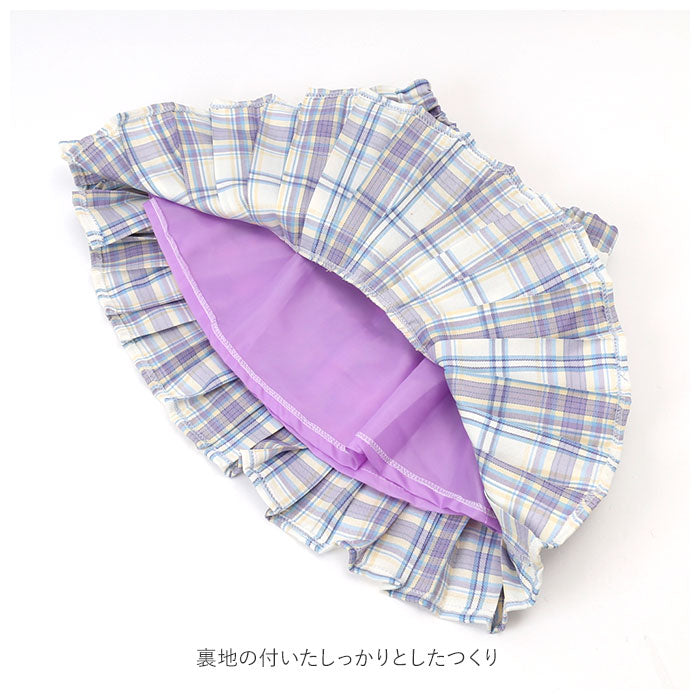 ・スカート・・・裏地の付いたしっかりとしたつくり。ウエストは着脱がラクチンなゴム仕様。裾にプリーツをあしらったデザインがかわいらしくも落ち着きのあるデザインに。