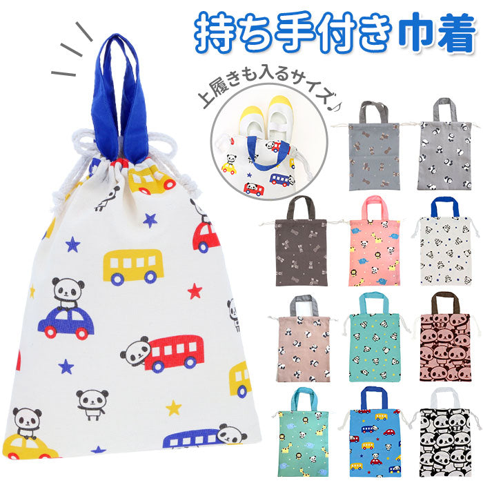 女の子 上履き入れ 通販 持ち手付き巾着 持ち手付き 巾着 上履き袋 パンダ 袋 きんちゃく 不織布バッグ アシストバッグ 補助バッグ 子供 かわいい 男の子 女の子 キッズ 幼稚園 保育園