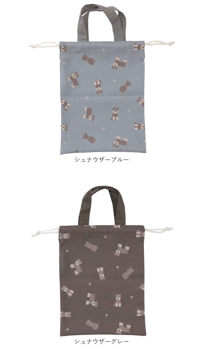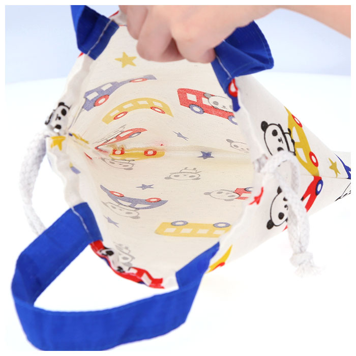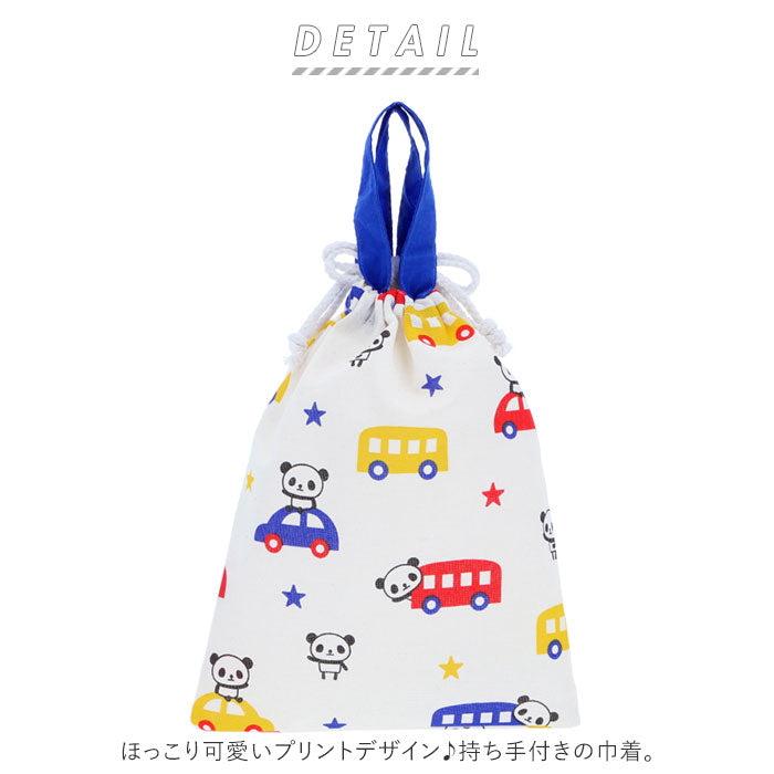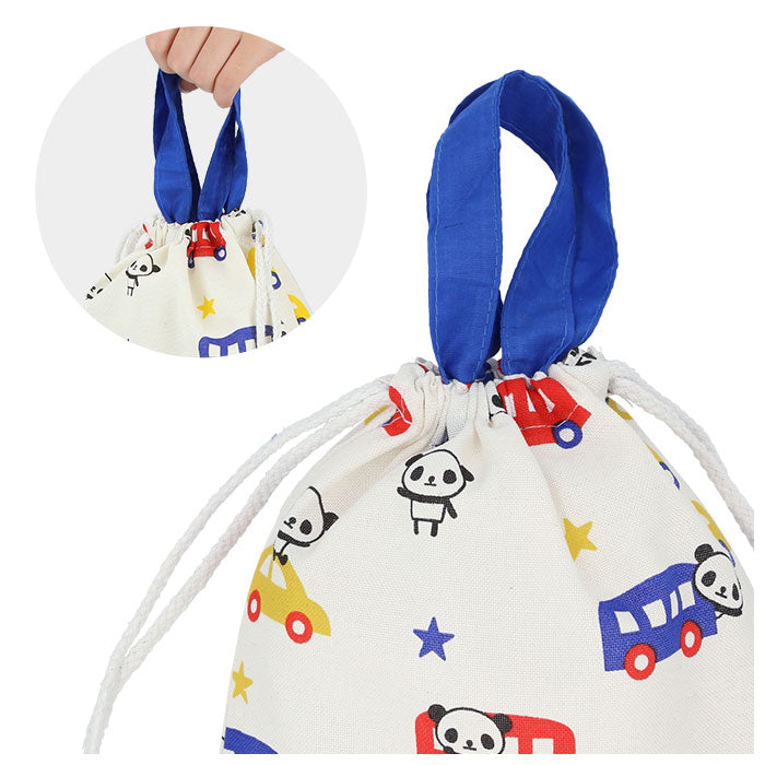 ・ほっこり可愛いプリントデザイン♪持ち手付きの巾着。