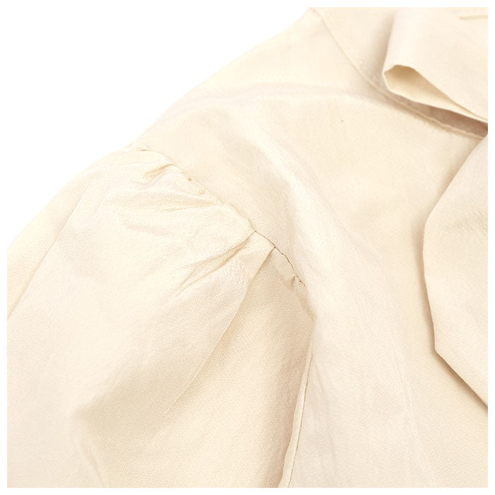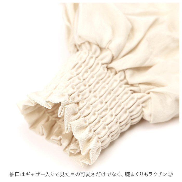 ・ボウタイブラウスは、襟部分のリボンを蝶結びすることで華やかな印象に。袖口はギャザー入りで見た目の可愛さだけでなく、腕まくりもラクチン◎
