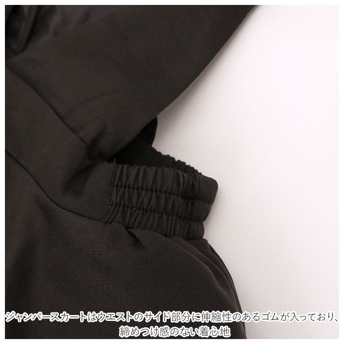 ・ジャンパースカートはウエストのサイド部分に伸縮性のあるゴムが入っており、締めつけ感のない着心地。バックリボンを固結びすれば後ろ姿もキュート♪