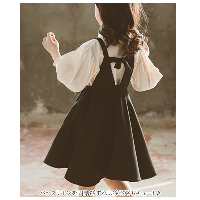子供 服 女の子 セットアップ 通販 ジャンパースカート スカート ブラウス シャツ サロペットスカート 上下セット エレガント フォーマル リボン 蝶結び フレア トップス 子供服 子供 服