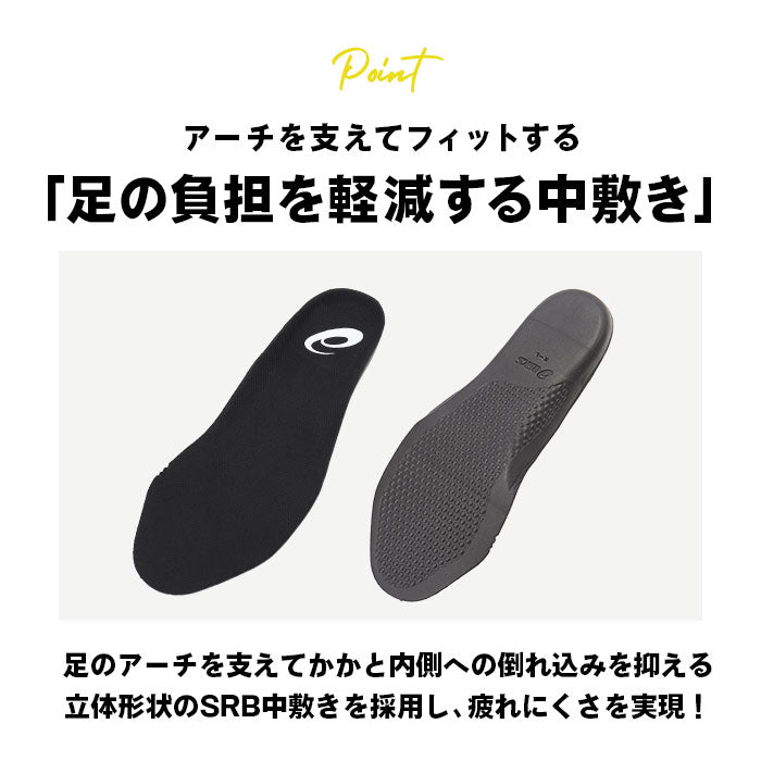 ・ソールのかかと部分にはfuzeGELを使用。衝撃を吸収し、足の負担を軽減。クッション性に優れ歩きやすい◎