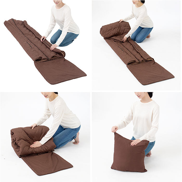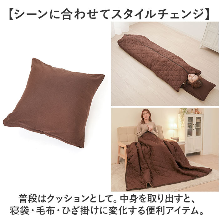・クッションが寝袋に変身!使い方を選べる「HOTαリバーシブル着る寝袋クッション」。