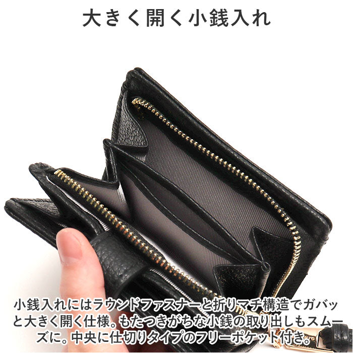 ・小銭入れにはラウンドファスナーと折りマチ構造でガバッと大きく開く仕様。もたつきがちな小銭の取り出しもスムーズに。