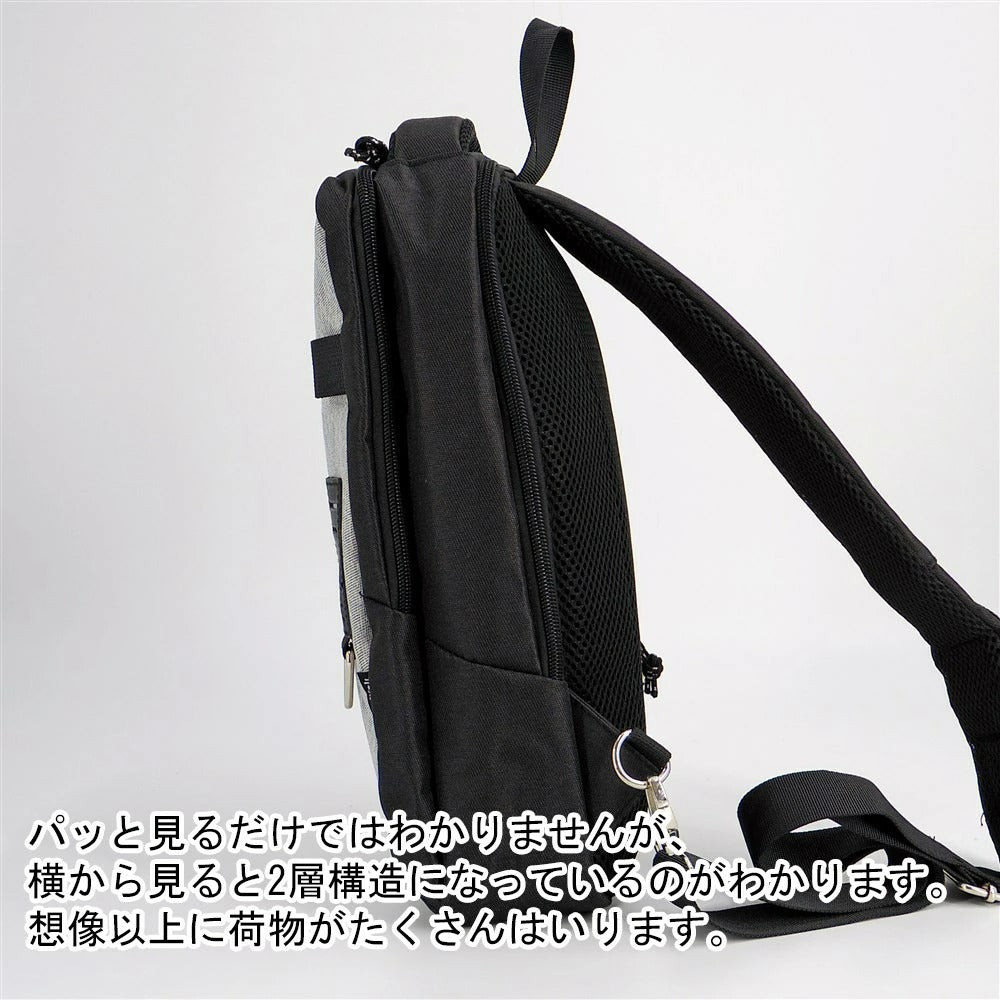 ・メインルームとサブルームが付いた2層式のボディバッグ。