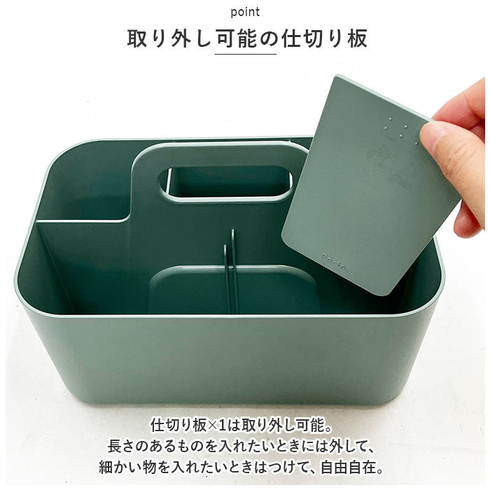 ・仕切り板×1は取り外し可能。長さのあるものを入れたいときには外して、細かい物を入れたいときはつけて、自由自在。