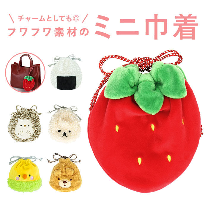 巾着袋 小 通販 小さい 給食 きんちゃく 巾着 ポーチ コップ入れ いちご イチゴ おにぎり インコ くま ハリネズミ ビションフリーゼ ミニ巾着 かわいい グッズ 可愛い 女の子 インテリアカンパニー 入園 入学