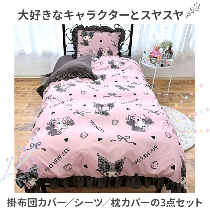 布団カバー 3点セット シングル 可愛い 通販 ふとんカバー 3点 セット かわいい おしゃれ キャラクター サンリオ フリル ふとん 布団 カバー 掛け布団カバー 敷布団 ベッド 兼用 シーツ