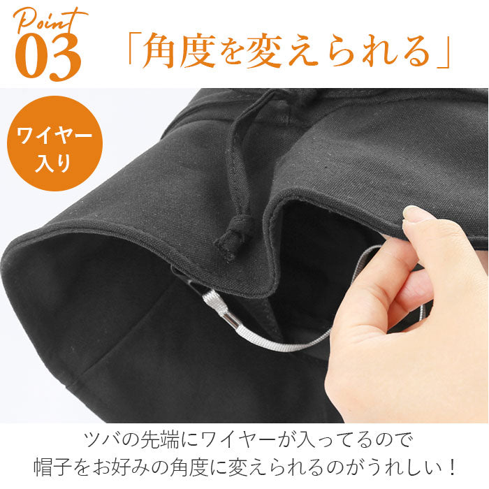 ・つばの先端にワイヤーが入ってるので帽子をお好みの角度に変えられるのがうれしい。