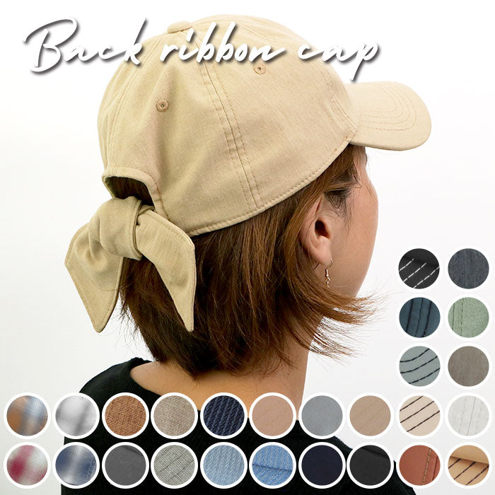 帽子 レディース キャップ 通販 おしゃれ 大人 かわいい リボン 後ろリボン ローキャップ シンプル 綿 コットン カジュアル ナチュラル スポーツ アウトドア キャンプ フリーサイズ バックリボン キャップ