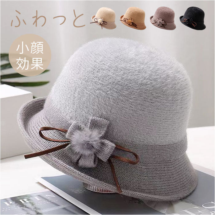 帽子 レディース 通販 ぼうし ハット レディース帽子 ふわふわ フワフワ 秋冬 あったか あたたかい もこもこ モコモコ 花 はな フラワー シンプル 無地 かわいい 可愛い 女性用 おしゃれ