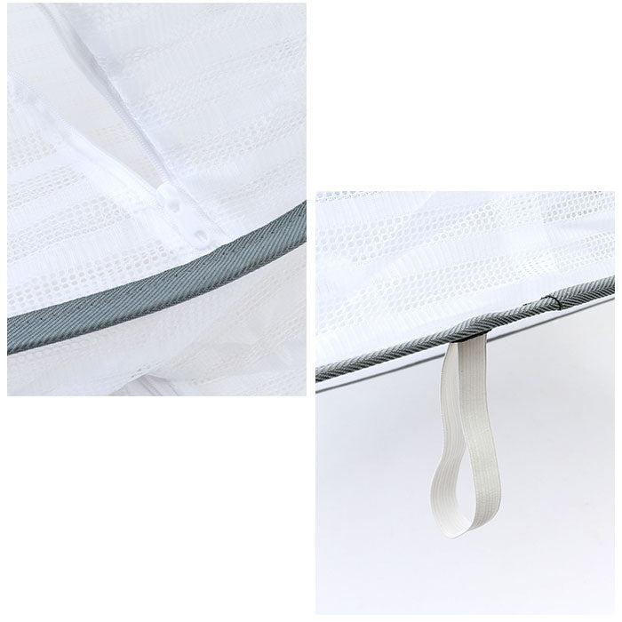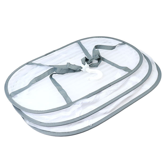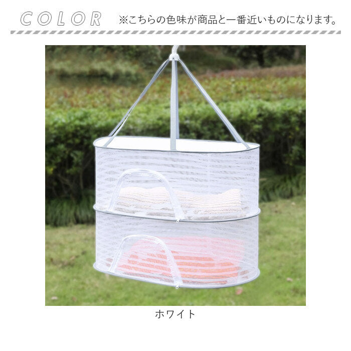 ・通気性のよい柔らかなメッシュ生地のネットをゆったりとした楕円形に仕上げ、2段に重ねたシンプル構造。たっぷりお洗濯しても、まとめて干せる嬉しいワイドサイズ!