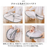 ・使用しない時には、外側のフレームをクルっとねじるように丸めて、サイドのゴムで留めれば、コンパクトに収納が可能。