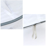・側面の半円形のファスナーを開いてオシャレ着をカタチを整えて干したら、あとは乾くのを待つだけ!側面にメッシュガードが付いているので、風に飛ばされる心配がなく、外干しもOK!