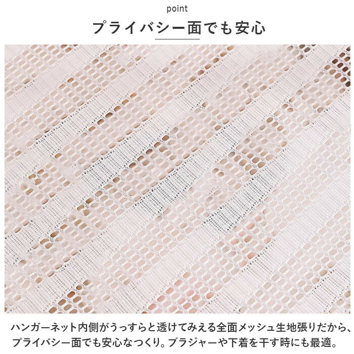 ・ハンガーネット内側がうっすらと透けてみえる全面メッシュ生地張りだから、プライバシー面でも安心なつくり。ブラジャーや下着を干す時にも最適。