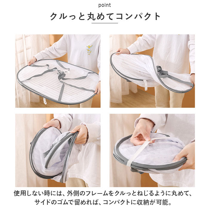 ・通気性のよい柔らかなメッシュ生地のネットをゆったりとした楕円形に仕上げ、3段に重ねたシンプル構造。たっぷりお洗濯しても、まとめて干せる嬉しいワイドサイズ!
