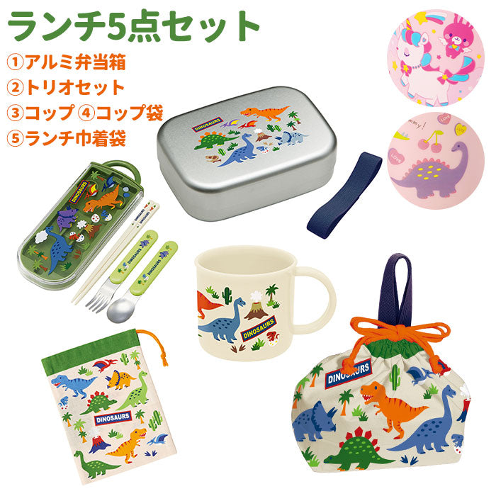 弁当箱 アルミ 通販 5点セット アルミ弁当箱 スプーン フォーク お箸 おはし 箸 はし コップ コップ袋 ランチ巾着 お弁当箱 ランチボックス ランチボックス キャラクター ディノサウルス 男の子 子供 こども 子ども かっこいい 遠足