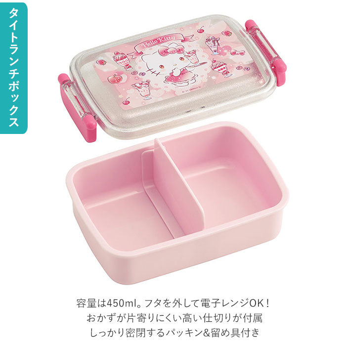 ・人気キャラクターの絵柄がかわいい!タイトランチボックス・トリオセット・プラコップ・ランチ巾着・ランチクロスの5点セット。
