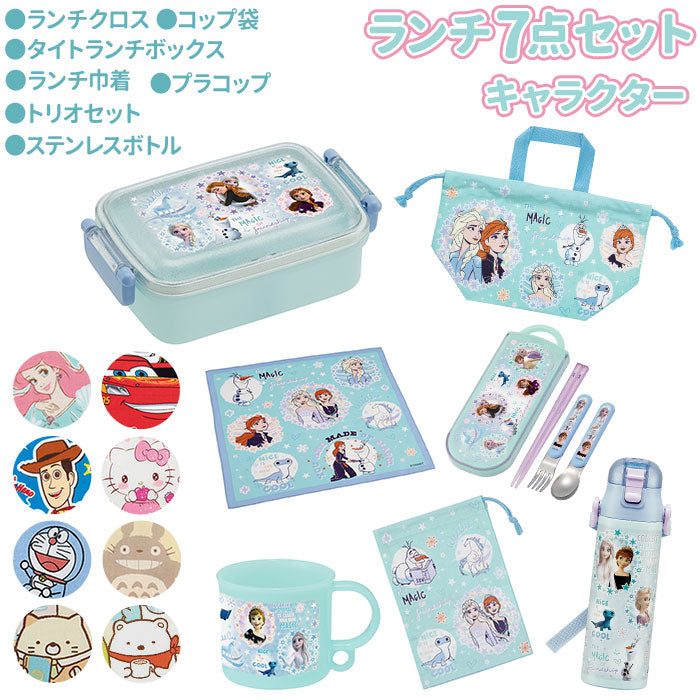 ・大人気キャラクターが描かれた可愛い「タイトランチボックス・トリオセット・プラコップ・ランチ巾着・ランチクロス・コップ袋・ステンレスボトル」の7点セットが登場!