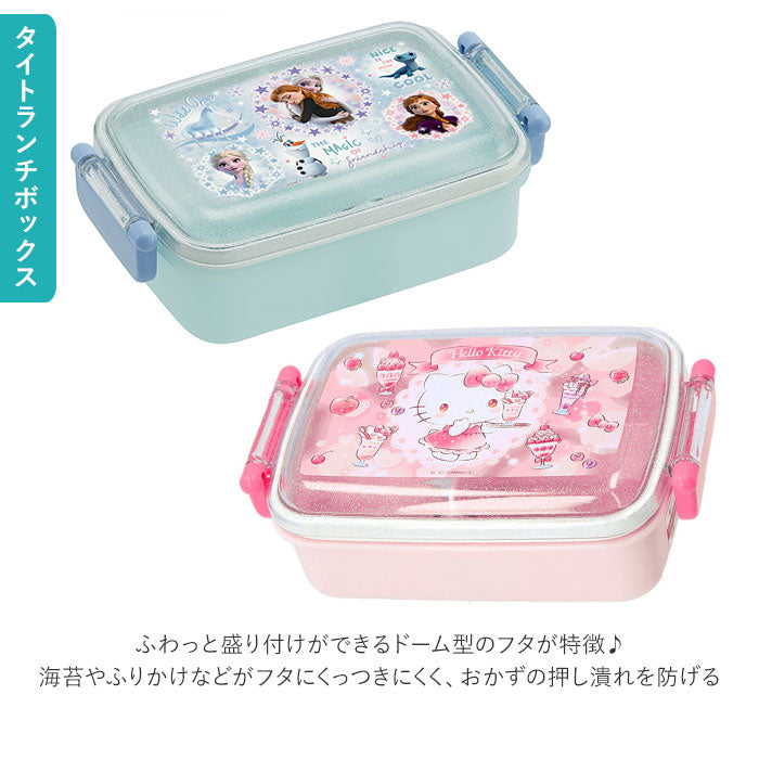 【ランチボックス】…ふわっと盛り付けができるドーム型のフタが特徴♪海苔やふりかけなどがフタにくっつきにくく、おかずの押し潰れを防げる。容量は450mlと食べるのが大好きな子でも満足できる容量サイズ◎