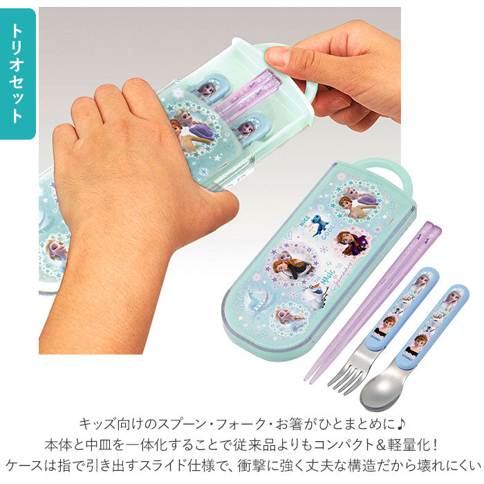 【トリオセット】…キッズ向けのスプーン・フォーク・お箸がひとまとめに♪本体と中皿を一体化することで従来品よりもコンパクト&軽量化!
