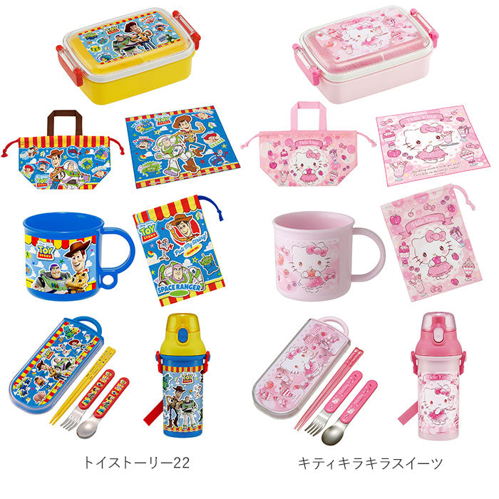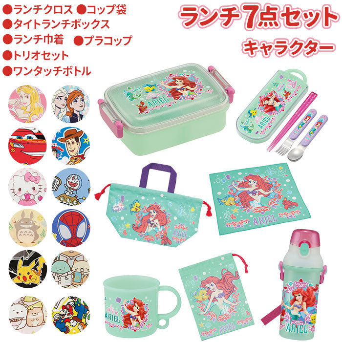 ・大人気キャラクターが描かれた可愛い「タイトランチボックス・トリオセット・プラコップ・ランチ巾着・ランチクロス・コップ袋・ワンタッチボトル」の7点セットが登場!
