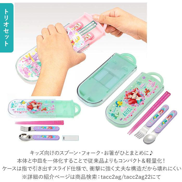 【トリオセット】…キッズ向けのスプーン・フォーク・お箸がひとまとめに♪本体と中皿を一体化することで従来品よりもコンパクト&軽量化!